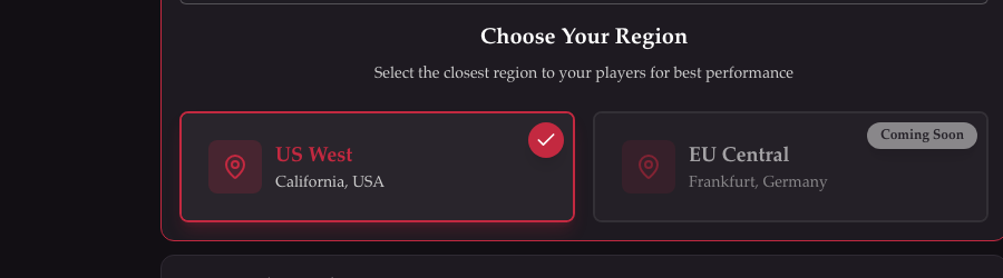 Choose the server location closest to you and your players for the best performance: